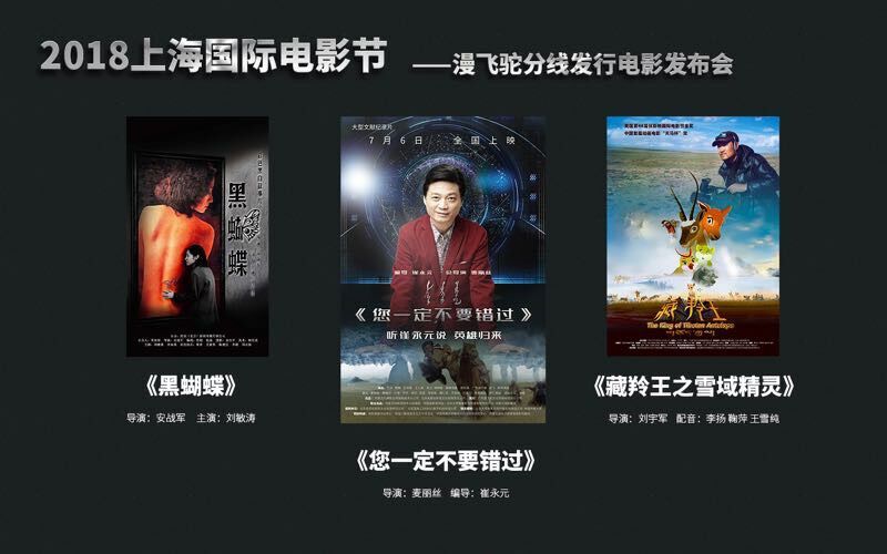 刚刚在电影节论坛上面崭露头角的广州漫飞驼文化传媒又有新动作,重磅连续推出由崔永元编导、麦丽丝导演的真实文献片《您一定不要错过》、刘宇军导演的纪实动漫《藏羚王》系列新作和安战军导演的女性题材新作《黑蝴蝶》。